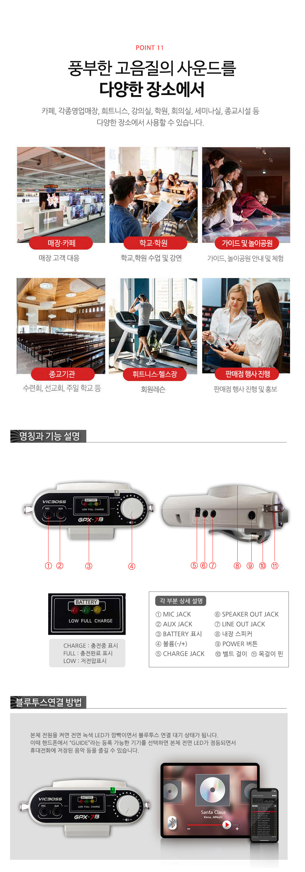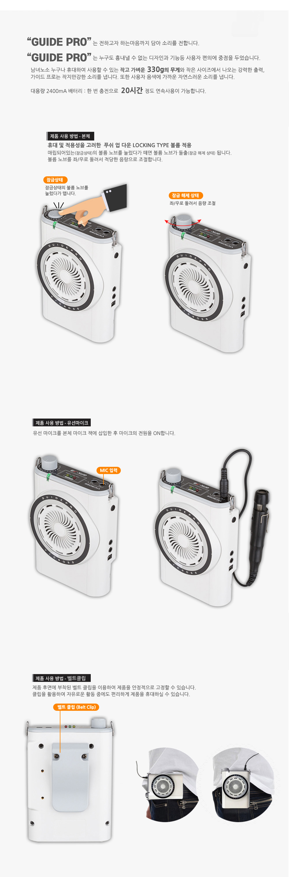 작지만 강력한 미니 앰프로 문화재 해설사들의 생생한 전달력을 위해 탄생했습니다.야외 현장에서도 목소리가 또렷하게 퍼져 관광객 모두가 해설을 편안하게 들을 수 있습니다.상황에 맞춰 세밀하게 조정 가능한 볼륨과 선명하고 균형 잡힌 음향을 보장합니다.가볍고 휴대가 간편해 언제 어디서든 손쉽게 사용할 수 있으며,문화재 해설은 물론 각종 교육·행사 현장에서도 믿을 수 있는 최고의 파트너가 되어드립니다.