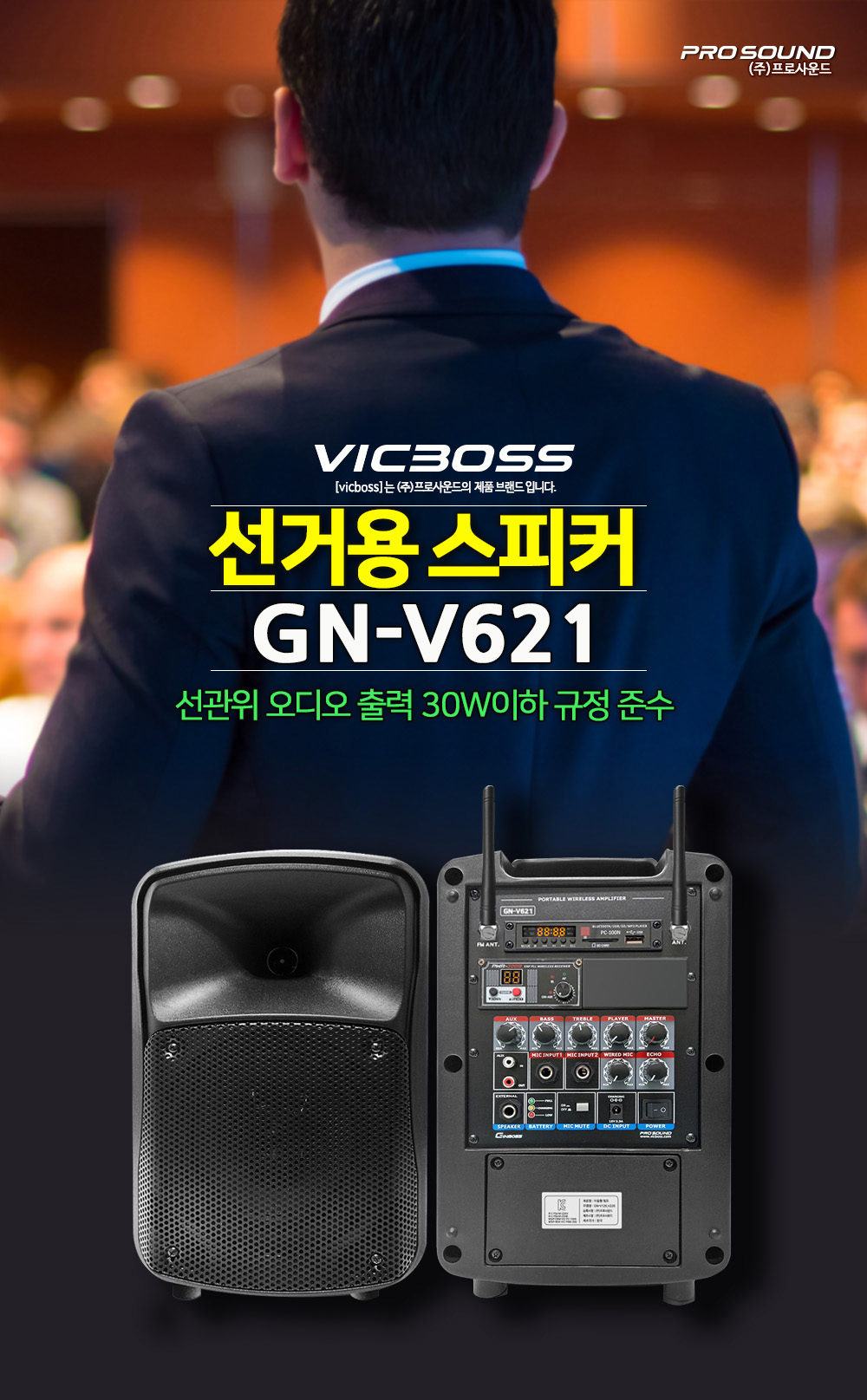 선관위 오디오 출력 30W이하 규정 준수