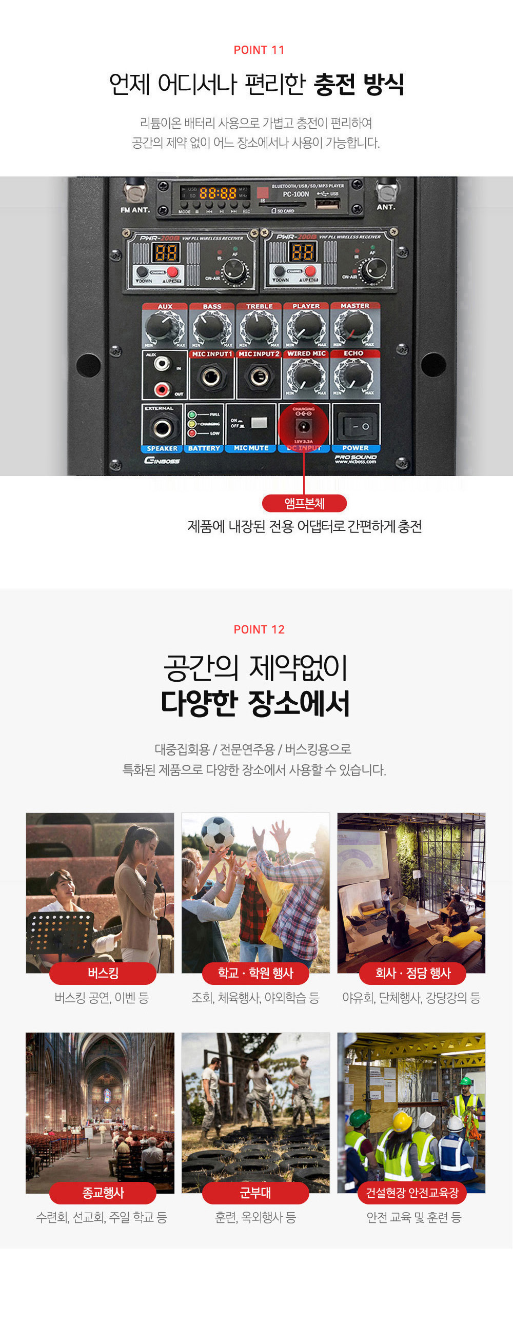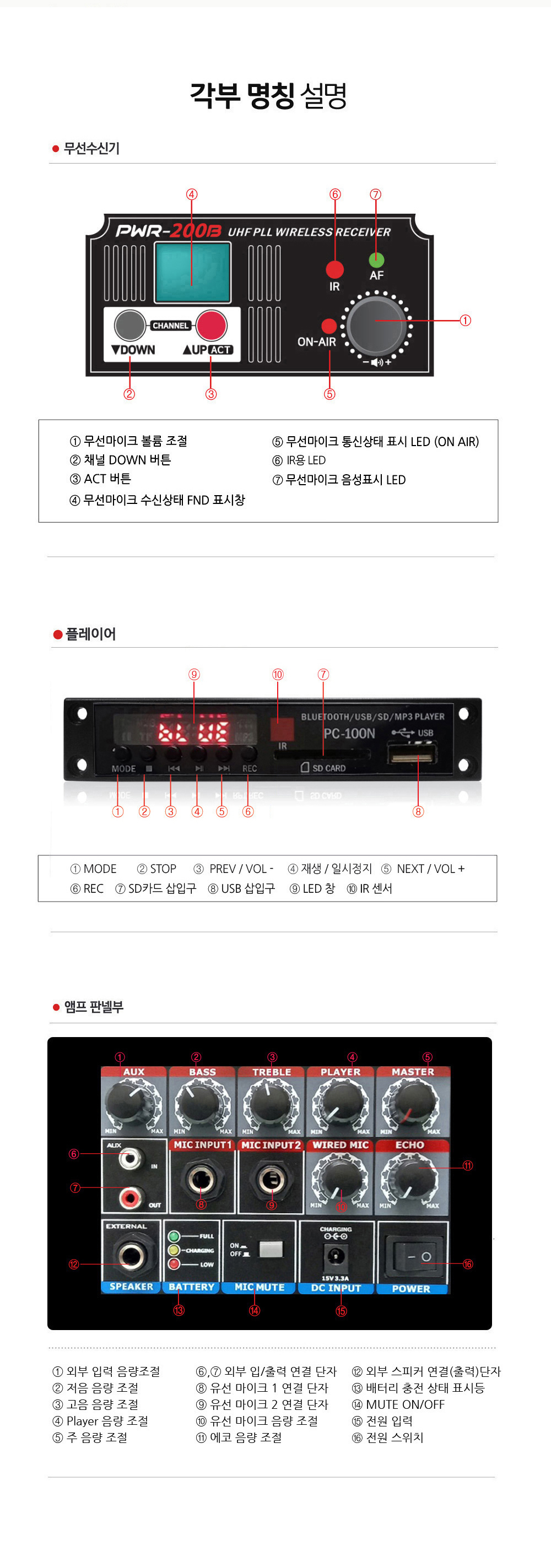블루투스, USB, SD, 녹음 및 외부입력이 가능한 멀티 포터블 앰프.