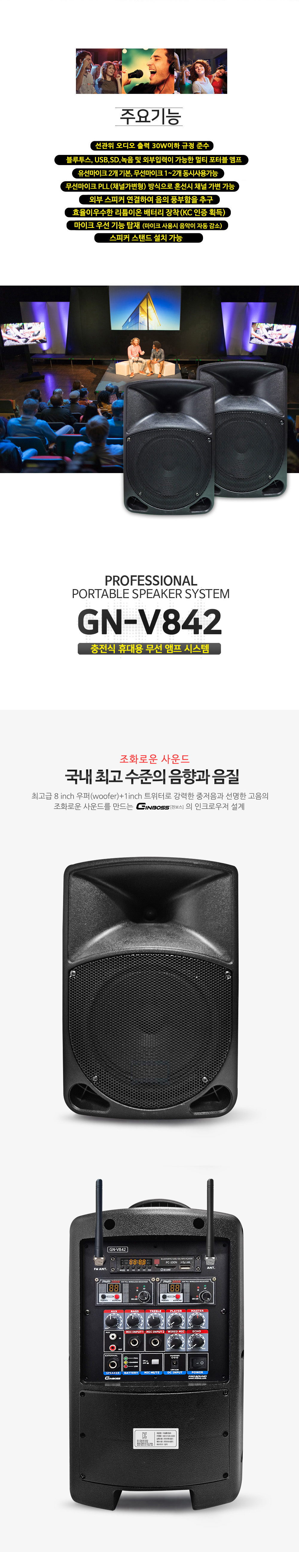 블루투스, USB, SD, 녹음 및 외부입력이 가능한 멀티 포터블 앰프.